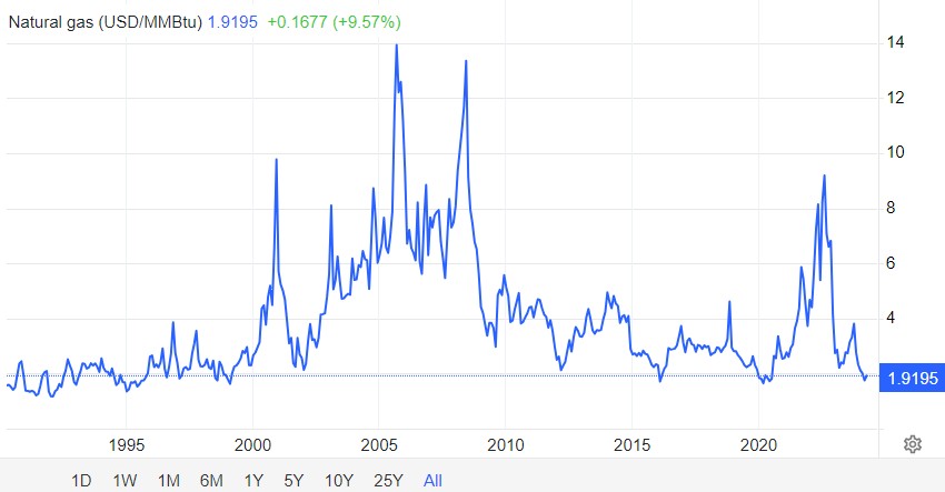 原因在于此前美国暖冬天气导致市场对天然气的需求减少。与此同时,原油价格持于高位则导致钻井活动活跃,在钻探石油的过程中,天然气通常会作为副产品被生产出来,令天然气生产过剩,进一步打压了天然气价格。